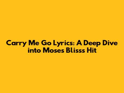 Carry Me Go Lyrics: A Deep Dive Into Moses Bliss's Hit