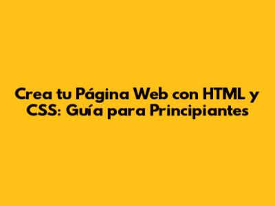 Crea Tu Página Web Con HTML Y CSS: Guía Para Principiantes