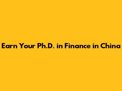 Earn Your Ph.D. In Finance In China