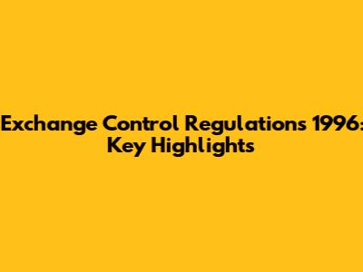 Exchange Control Regulations 1996: Key Highlights