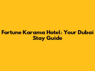 Fortune Karama Hotel: Your Dubai Stay Guide