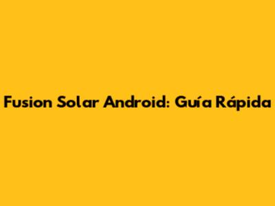 Fusion Solar Android: Guía Rápida