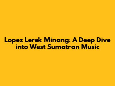 Lopez Lerek Minang: A Deep Dive Into West Sumatran Music