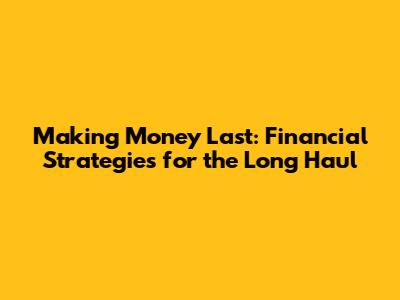 Making Money Last: Financial Strategies For The Long Haul