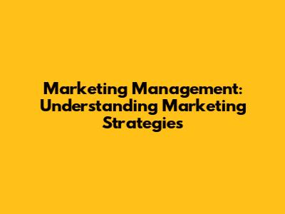 Marketing Management: Understanding Marketing Strategies