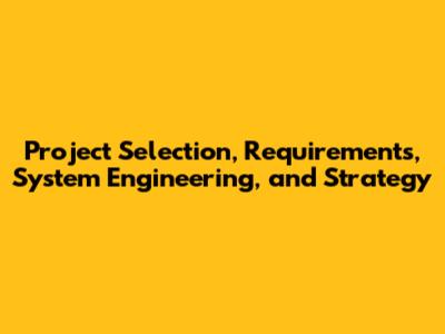 Project Selection, Requirements, System Engineering, And Strategy