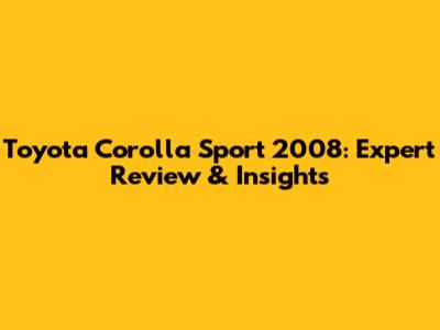 Toyota Corolla Sport 2008: Expert Review & Insights