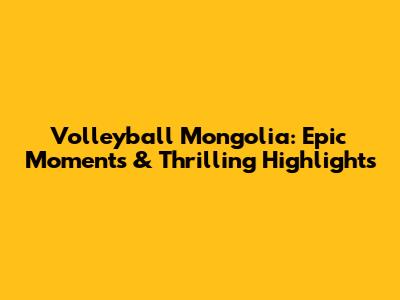 Volleyball Mongolia: Epic Moments & Thrilling Highlights